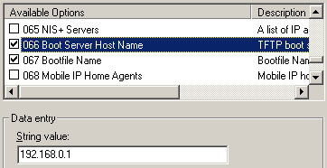 option tftp-server-name "192.168.0.1";