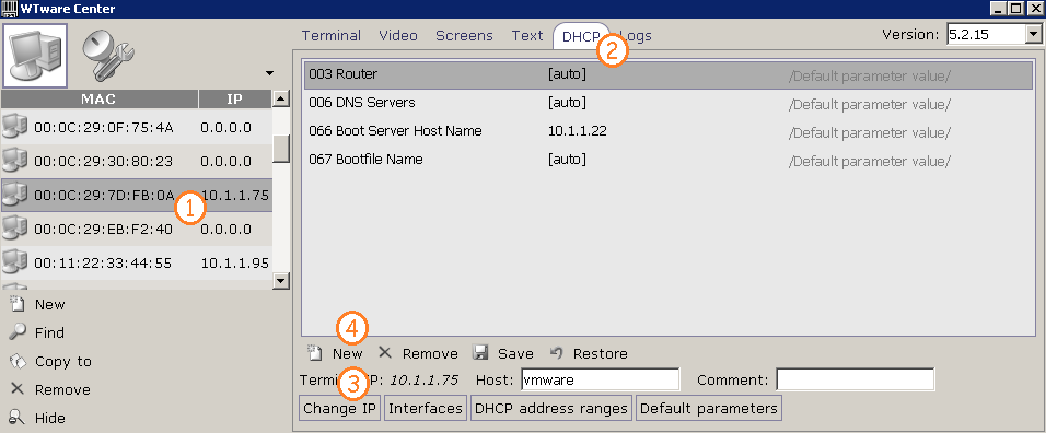 WTware DHCP may work through built-in router DHCP Relay. Before configuration firstly boot terminal. If router DHCP Relay is configured correctly, terminal sends request to WTware DHCP service. DHCP receives request and adds terminal to WTware configurator list of terminals.