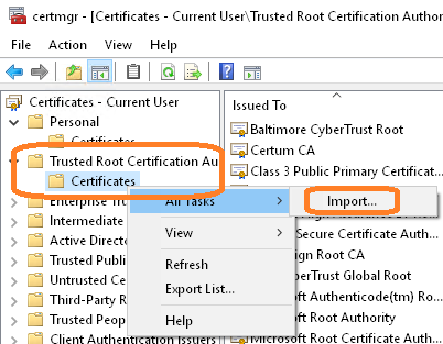 Our root certificate is available from any terminal. Open by HTTP (not HTTPS) terminal IP in browser and open "About HTTPS" section. When you install certificate in Firefox select this item: