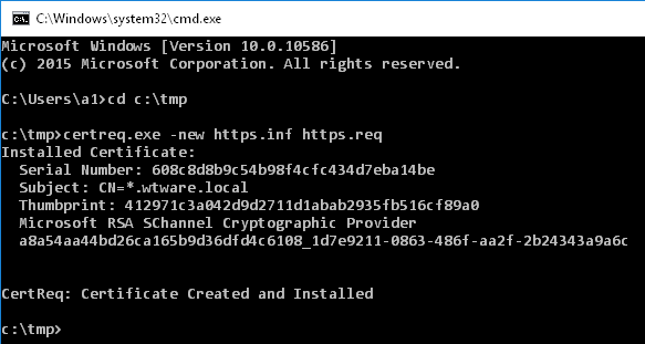 This certificate is also released for *.wtware.local names. DNS is to be configured anyway. But you can bound certificate to other names by editing https.inf.