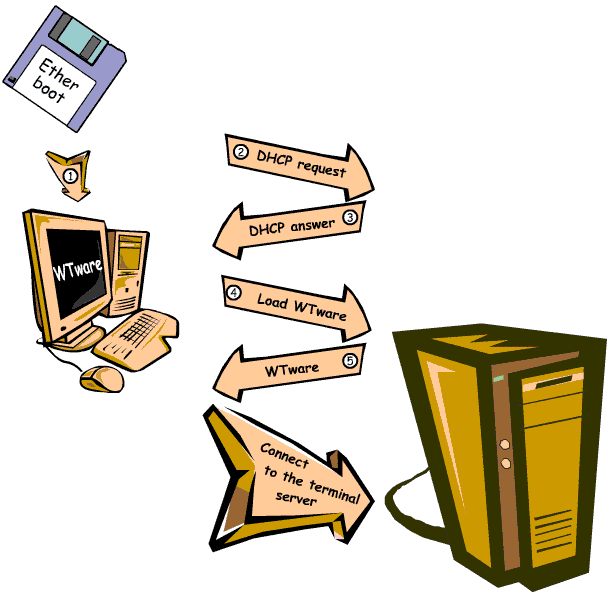There are many ways of computer network boot. The main point of all these ways is the same: during the boot some bootstrap loader should be executed on the terminal. It's a kind of a microprogram that completes BIOS's functionality with boot by network.