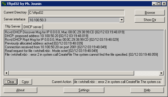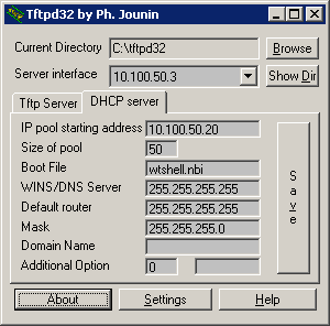 be: c:\wtware.net\wtshell.nbi. In tftpd32 press Settings button, then Browse and