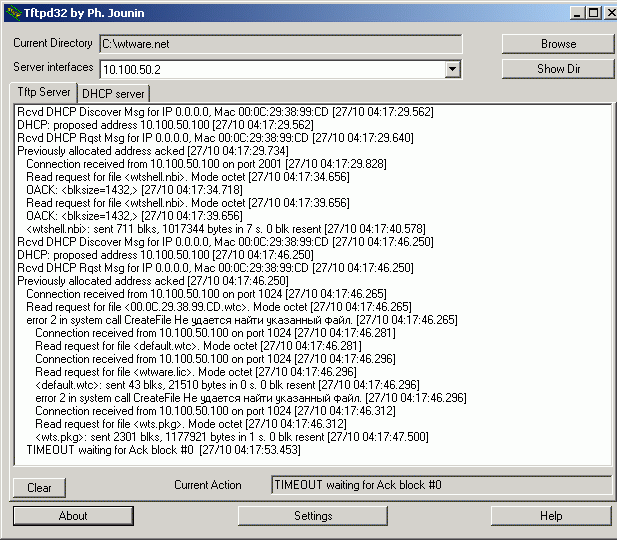 network, where the terminal and the server are.Size of pool: the amout of this pool (specify at least 10).Boot File: type wtshell.nbi here.Mask: mask of the network, where the terminal and the server are.Then press "Settings" button and configure tftpd32 in this way: