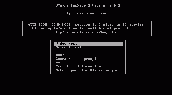 7. Test video driver. Choose first menu item, "Video test". On the terminal screen should appear: